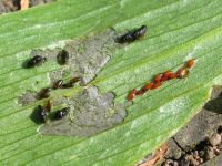 In the interim, lily growers are advised to control the beetle by observing areas where lilies grew the previous year, and then killing the beetles as they emerge. Remove any leaf litter once snow melts from these areas to hasten beetle emergence.